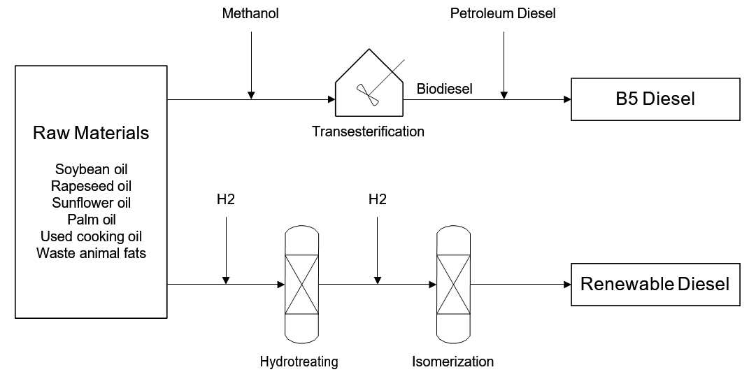 Renewable diesel: hydrotreated product of vegetable or fatty acid oils