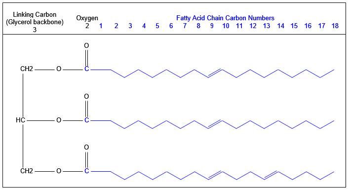 Glycerides distribution of carbons and double bounds is defined as XX:Y